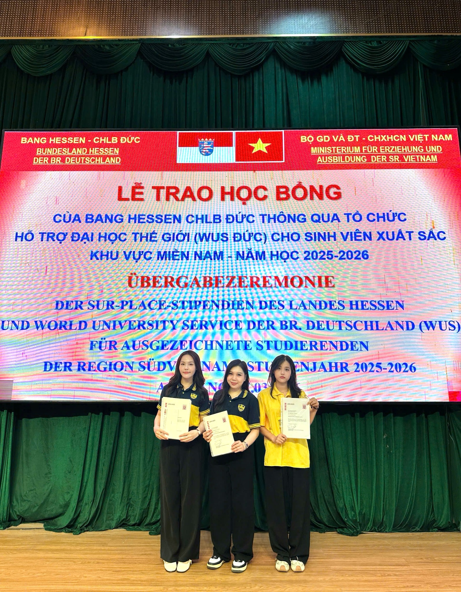 Học bổng HESSEN là chương trình uy tín của Bộ Khoa học và Nghệ thuật Bang Hessen, thông qua tổ chức WUS, nhằm hỗ trợ sinh viên có hoàn cảnh khó khăn nhưng đạt thành tích học tập xuất sắc. Sau 35 năm tại Việt Nam, chương trình đã hỗ trợ hàng nghìn sinh viên trên cả nước.