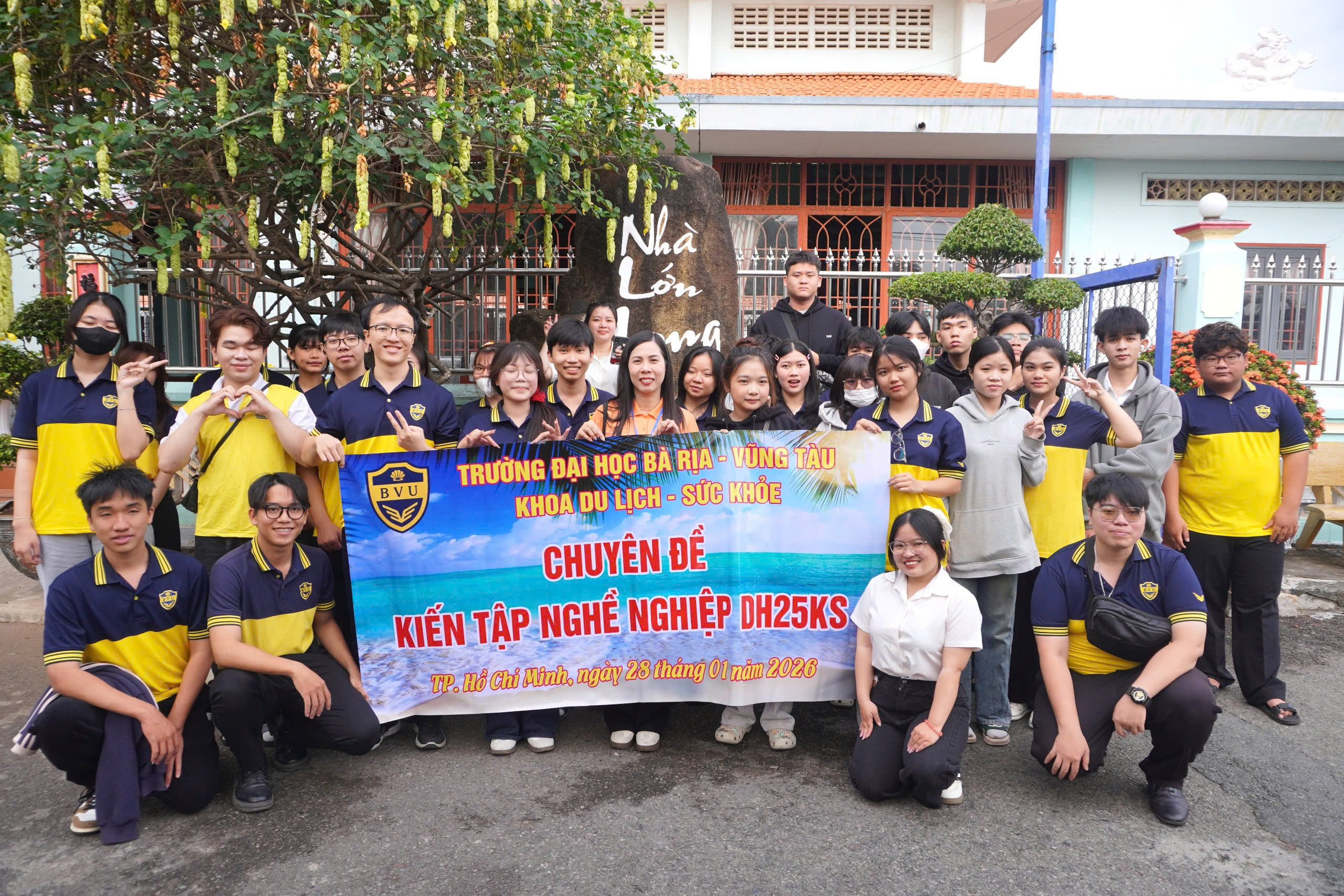 Ngày 28/01/2026, sinh viên ngành Quản trị khách sạn khóa 2025 của Trường Đại học Bà Rịa – Vũng Tàu (BVU) đã có chuyến tham quan thực tế trong khuôn khổ học phần “Chuyên đề kiến tập nghề nghiệp” với hành trình kết hợp tham quan di tích lịch sử – văn hóa và trải nghiệm môi trường làm việc tại doanh nghiệp du lịch – khách sạn cao cấp.